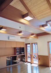 天井に梁をめぐらせ、キャットウォークをつくりました。天井を高く取り、開放的な空間がひろがります。